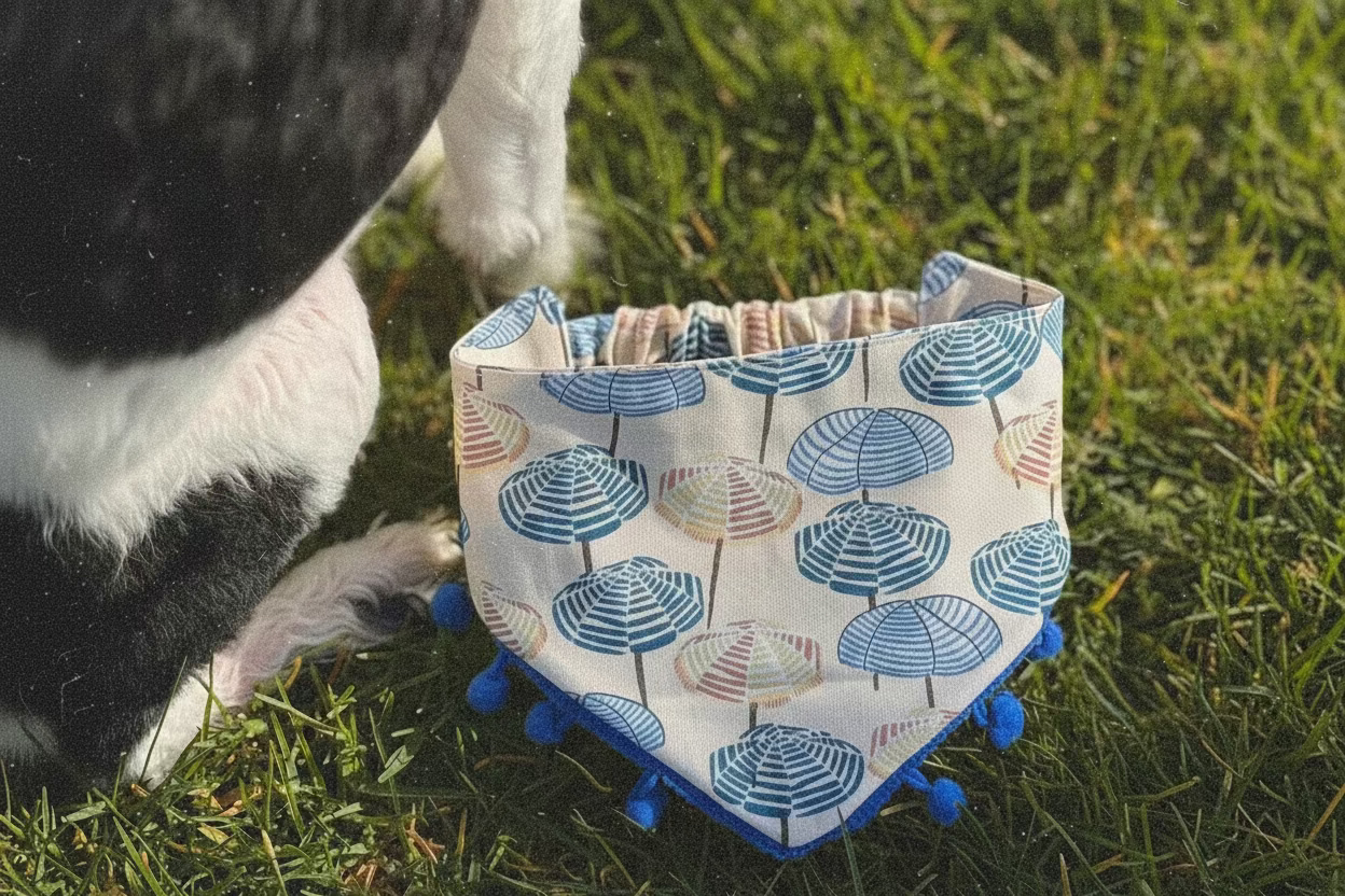 Beach aesthetics, PomPom Fringe Dog Bandana - Elastic Strap